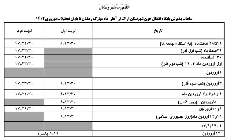 اعلام ساعات پذیرش اهدا کنندگان محترم در پایگاه انتقال خون شهرستان در ماه مبارک رمضان ۲۸ اسفند ۱۴۰۳ | ۱۳:۰۸ کد : ۵۰۲۶۹ اطلاعیه ارسال به دیگران نام شما ایمیل شما ایمیل دریافتکننده ارسال انصراف تعداد بازدید:۷۲۴۹ اعلام ساعات پذیرش اهدا کنندگان محترم در پایگاه انتقال خون شهرستان در ماه مبارک رمضان