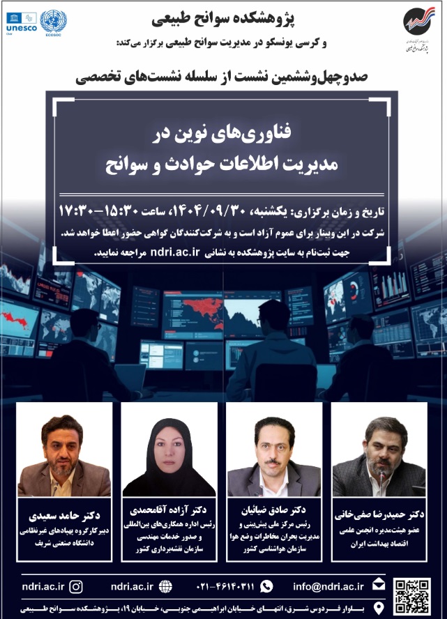 نشست فن آوری نوین در مدیریت اطلاعات حوادث وسوانح ۳۰ آذر ۱۴۰۴ | ۱۲:۰۴ کد : ۵۷۱۴۹ اطلاعیه ارسال به دیگران نام شما ایمیل شما ایمیل دریافتکننده ارسال انصراف تعداد بازدید:۶۴ دعوتنامه نشست فن آوری نوین در مدیریت اطلاعات حوادث وسوانح